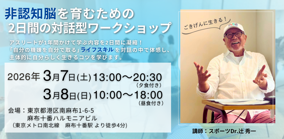 オリンピアンなどのアスリートから、ビジネスマン、音楽家、経営者、教育関係、コーチ、子どもたちなど幅広い分野の方にメンタルトレーニングを実施しているDr.辻󠄀の2daysワークショップです。